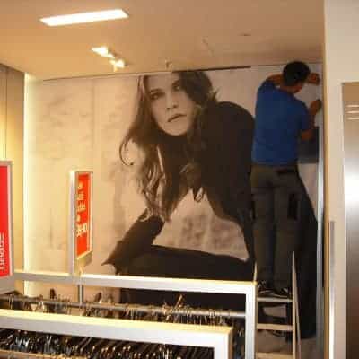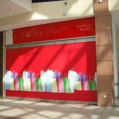 Beschriftung von Einkaufscentern erfordert zumeist eine besonders schnelle und präzise Arbeit, um den normalen Tagesablauf und die Einkaufspassanten nicht zu stören.